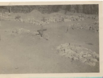 These two photos above are of the graveyard at Giarabub 1941. Sgt George Checketts states they were taken following the deaths of Pilot Sgt John Hemus, Sgt John Dewar Obs., and WOp/Ag Sgt William Lee 19/11/1941. All had recently arrived on the Squadron and died when Blenheim Z5866 Mk IV crashed just after take off at Giarabub. Note the cross in the background has considerable writing on it but most can not be made out. (NOTE: Sgt Checketts incorrectly listed Sgt John Berry as Obo rather than Sgt John Dewar)