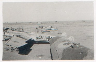 The squadron moved from Heliopolis to Ma'aten Bagush when Italy entered the war in June 1940. The squadron made a succession of moves supporting the land battles towards and into Libya. Each new landing ground very much like the previous one, just flat a flat dusty area with no facilities, and these moves are very much a blur to Stan. There often wasn't time to pitch tents and so just slept wrapped in blankets and the nights did get cold. The priority was to keep the planes flying! He does remember arriving at an ex Italian airfield, probably El Adam, with badly damaged buildings and being told off by a Flt Sgt for `scrounging' around the area, it was explained that there were likely to be booby traps around.