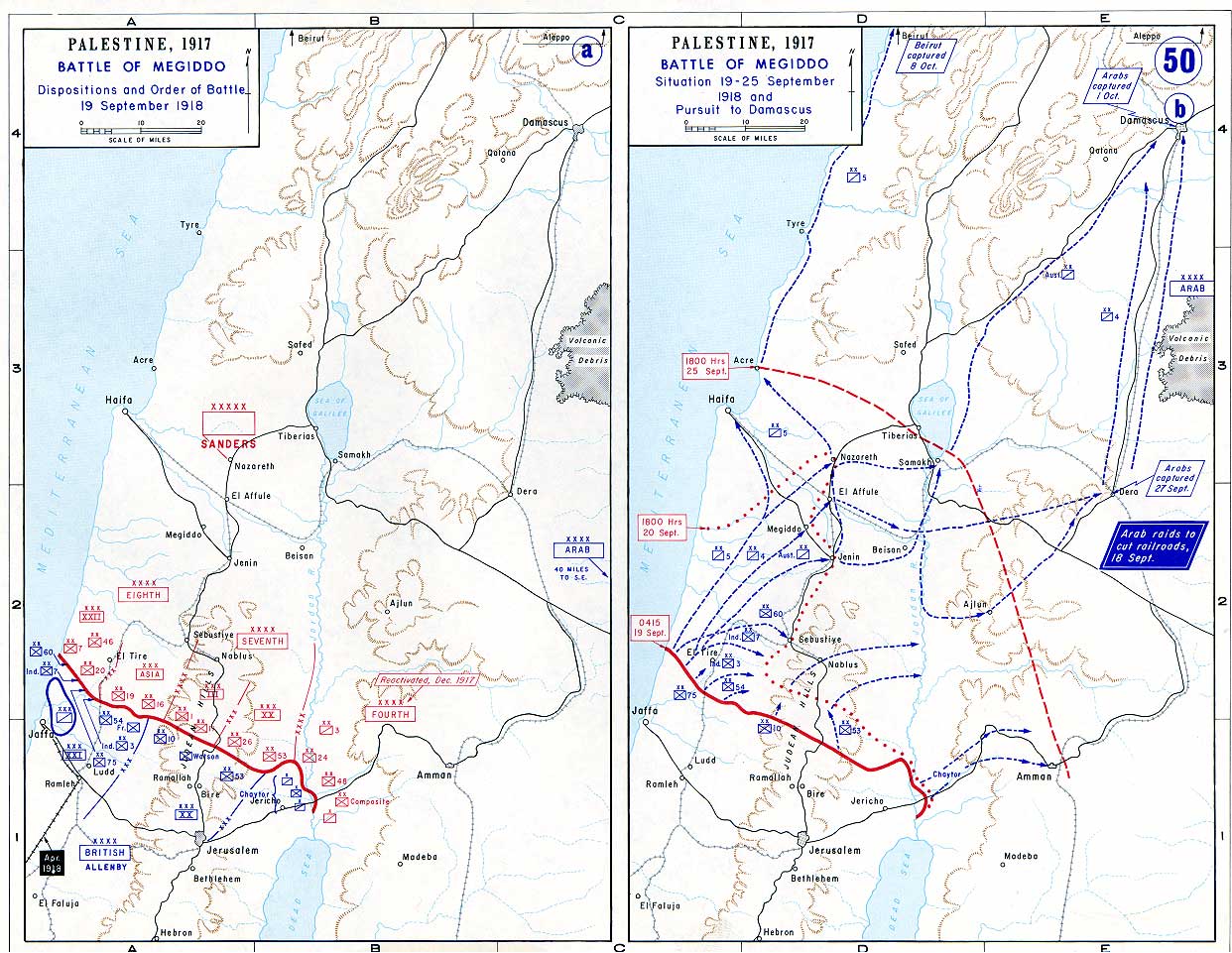 MAP OF PALESTINE - Battle Of Megiddo and Pursuit to Damascus